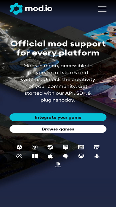 89%Support mods on PC, console and mobile with mod.io, a platform which makes it easy to grow, manage and integrate UGC in-game, using our API, SDK and plugins for Unity, Unreal Engine and more.
