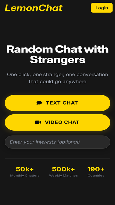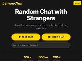 82%LemonChat – Best Random Chat Platform. Talk to strangers from all over the world through text or video. Safe and Anonymous. Omegle alternative.