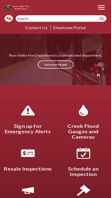 ross valley fire department is a consolidated fire agency protecting the communities of fairfax, san anselmo, ross, and sleepy hollow. consolidated july 1, 1982, the department employs one fire chief, one administrative assistant, twenty five full time firefighters, one fire inspector and fifteen active volunteer firefighters. nine of the department's firefighters are paramedics and all engines companies are equipped with advanced life support medical equipment.