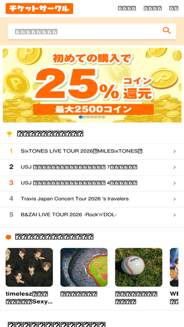 【国内no1の実績】チケット流通センターはチケットの売りたい買いたいをつなぐ、個人間のチケットお取次ぎサービスです。安心安全のチケットリセールサイトとして20年。チケットが届かない場合は全額返金。コンサート、ライブ、スポーツ、演劇、宝塚などの人気チケットが多数あります。