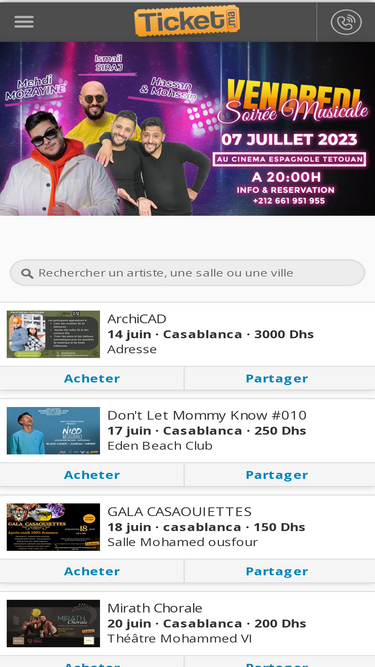 85%Trouvez l'offre de concerts, spectacles, cinéma, festivals et théâtre la plus large du Maroc ! Achetez vos tickets en quelques clics !