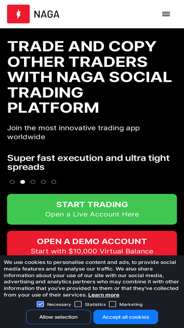99%Join NAGA, the all-in-one trading platform offering over 4000 assets, including Real Stocks, Currency CFDs, Indices, Commodities, ETFs, and more. Enjoy Copy Trading, Demo and Live accounts, and multiple trading account currencies. Sign up now and start trading with ease.
