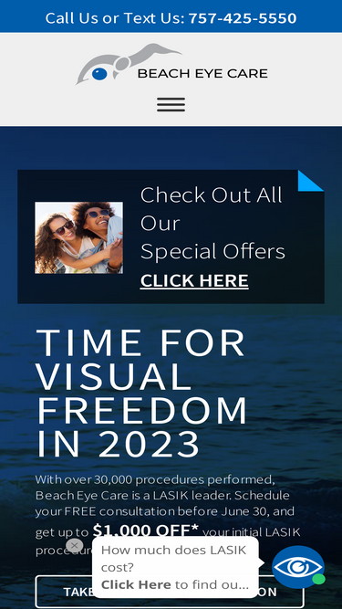 100%Beach Eye Care is one of the largest and most comprehensive eye care facilities in Virginia Beach and Hampton Roads providing services for LASIK laser vision correction, cataracts removal, glaucoma treatment, diabetic retinopathy, and macular degeneration.
