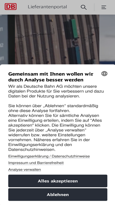 79%Welcome to the Supplier Portal of Deutsche Bahn AG. Want to support Deutsche Bahn as a supplier? Then you're in the right place.