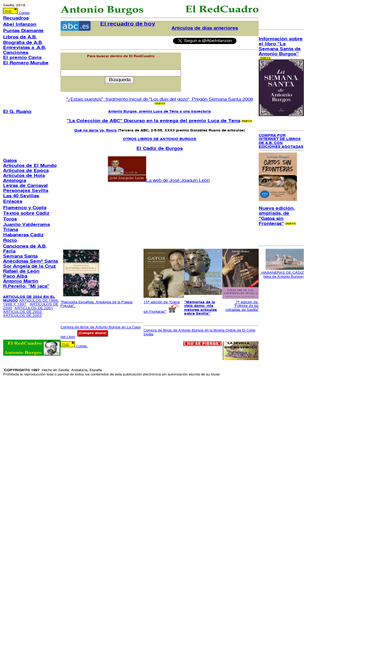 el redcuadro de antonio burgos: libros y obra periodística con hemeroteca digital y buscador; andalucía, sevilla, gatos, flamenco, carnaval, copla y semana santa, en textos, imágenes y enlaces