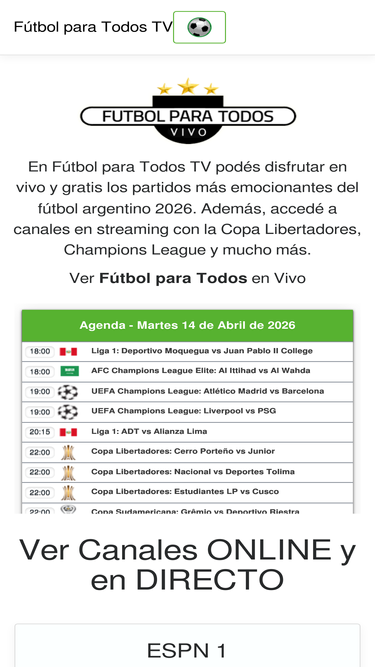 88%Fútbol para Todos TV transmite gratis los mejores partidos del fútbol argentino 2025. Miralos en vivo online: Libertadores, Sudamericana, Boca, River y más.