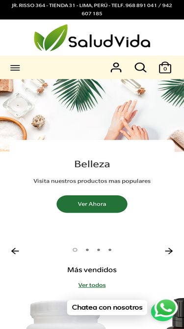 88%SaludVida Perú Estamos a su disposición para atender cualquier duda, consulta o pedido que desee realizar. Teléfonos y WhatsApp: 968891041 / 942607185 Email: ventas@saludvida.com.pe facebook: https://www.facebook.com/saludvida.com.pe/ instagram: saludvidaper