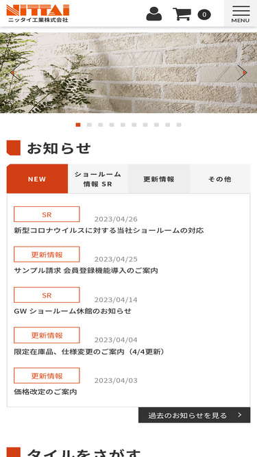 74%岐阜県多治見市のタイルメーカー、株式会社日東製陶所の「スワンタイル」のブランドサイトです。当社は国内トップクラスのタイルメーカー。当社のタイルは、全国のマンション、学校、戸建て住宅から、空港、デパート、官公庁まで幅広く使われています。これまではOEMの製造がほとんどでしたが、近年、自社ブランド「スワンタイル」のブラッシュアップにも力を入れ、積極的に売り込んでいます。スワンタイルの価値を広めようと、2015年に多治見市内に工房、カフェ、東京にショールームをOPEN。新しい取り組みにも積極的です。