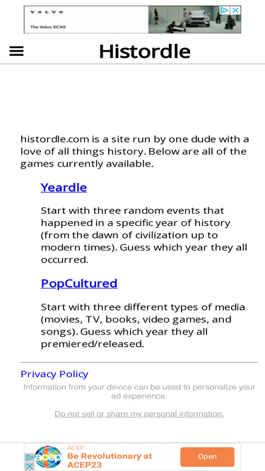 100%history-centric games, playable in 60 seconds. test your knowledge of ancient events, famous figures, pop culture, and more. new games every day at midnight.
