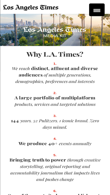 TRUSTED. CREDIBLE. AMBITIOUS. L.A. Times has an ideal audience that is desirable for advertisers while offering targeted solutions at every level.