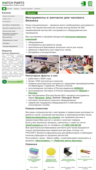 86%Watch Parts: продажа оборудования, инструментов, запасных частей для ремонта и обслуживания часов, ремешков и браслетов для наручных часов, батареек и акумуляторов от компании Руспарт.