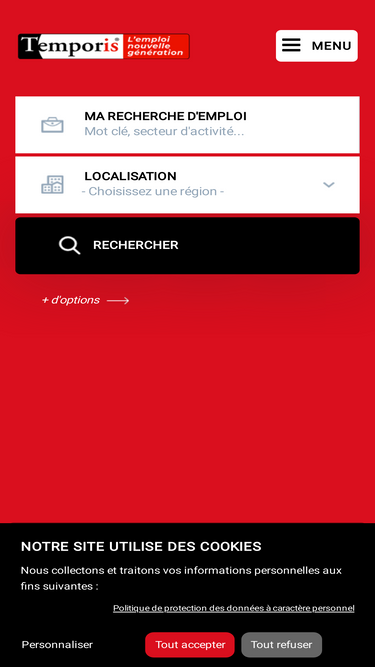 79%L'emploi nouvelle génération ! Plus de 9 000 offres d’emploi en intérim, travail temporaire, cdd, cdi sur Temporis.fr.
