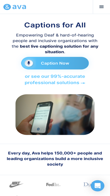 72%Ava provides state-of-the-art live captions powered by AI and professional transcribers for 99% accuracy to meet ADA requirements for work.