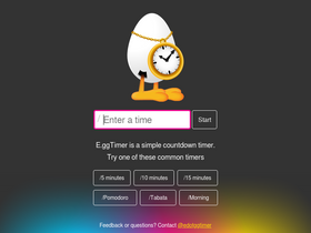 e.ggtimer.com is a simple, online countdown timer or egg timer. set a time and bookmark it for repeated use. you can also create a timer for a specific date or time. customize your experience with a variety of timer themes.