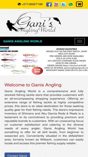 ganis angling world is situated in witbank and offers quality fishing tackle at the best prices. order from anywhere in south africa.