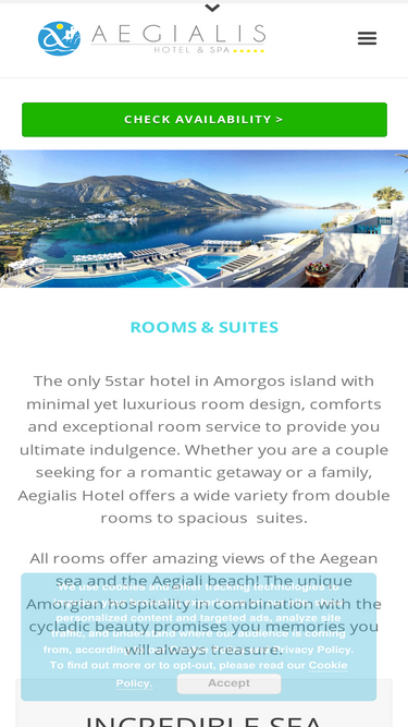 88%Aegialis, a 5star Hotel featuring a Thalassotherapy Spa, located near Aegiali beach,Amorgos, Cyclades. Daily connections from Santorini and Mykonos islands.