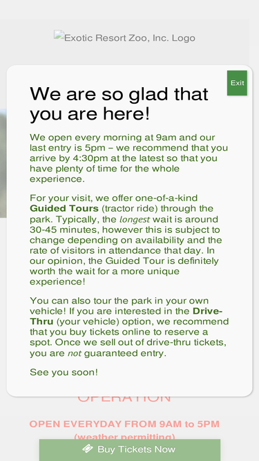 57%The Exotic Resort Zoo is an independently owned safari that's home to over 700 creatures representing over 50 species.