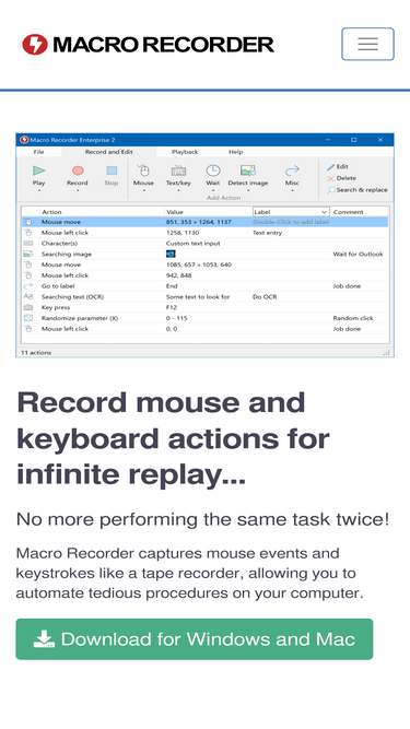 84%macro recorder is an automation solution and saves you from repetitive procedures. like a tape recorder, macro recorder records mouse clicks, mouse movements…