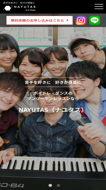 76%東京/船橋/大宮/宇都宮/横浜/静岡/名古屋/岐阜/京都/大阪/神戸/福岡など、全国73校のボイストレーニングスクールnayutas(ナユタス)。カウンセリングとマンツーマンレッスンで個人個人にあったレッスンを行います。ボイトレ以外にもダンスや楽器、動画編集などが学べます。
