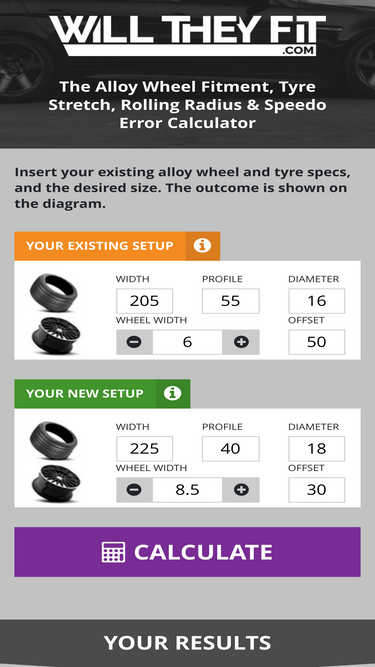 90%Alloy Wheel & tyre fitment calculator - it calculates inset, poke, speedo error, tyre stretch and loads more.