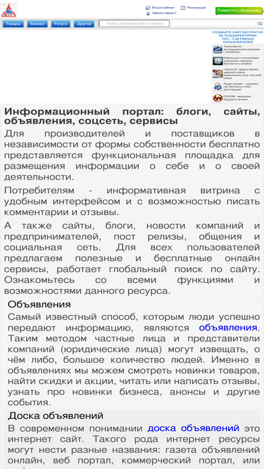 93%различная информация от юридических и частных лиц, соцсеть, возможность создать блог и интернет-магазин, персональную страницу, универсальная доска объявлений, полезные сервисы.