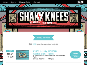 71%Shaky Knees - 1-Day VIP Ticket The 1-Day VIP Ticket gets you entry to Piedmont Park for Friday, Saturday OR Sunday of the festival. You must select which day you want to attend below. Includes all the amenities of GA along with: Access to on-field viewing areas. At Peachtree, Piedmont, and Ponce