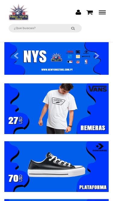 68%new york store ya conquistó una posición de respecto en el mercado, comercializa actualmente una gran variedad de ropas y calzados, cuenta con proveedores como: vans, dcshoes, caterpillar, new balance, tommy hilfiger, calvin klein, asics, timberland, merrell, converse, crocs, quiksilver y otras grandes marcas de moda. garantiza a sus clientes agilidad, calidad y una fácil negociación. new york store busca en el e-commerce, un medio de abarcar territorios de difícil acceso, valorizando así el interés de personas de todas las regiones que hoy no son beneficiadas con ropas y calzados de calidad alineados a un buen precio. nuestra tienda on-line nystore.com.py cuenta con un equipo profesional y que gana experiencia en cada venta realizada, alcanzando así la satisfacción de sus clientes.