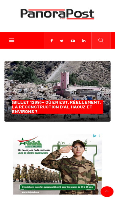” alt=”image”> ” alt=”Slide”> ميدمار نيوز ” alt=”image”> ” alt=”Slide”> النشرة الإخبارية كل أسبوع أفضل الأخبار في صندوق بريدك أوقات الصلاة الرباطالدار البيضاءفاسمراكشطنجةأكادير الفجر 05:21 الشروق 06:53 الظهر 13:35 العصر 17:09 المغرب 20:07 العشاء 21:26 أحوال الطقس أسعار العملات البيع / الشراء اليورو 9.99030 / 11.6103 الدولار الأمريكي 9.13530 / 10.6167 الريال السعودي 2.4320 / […]
