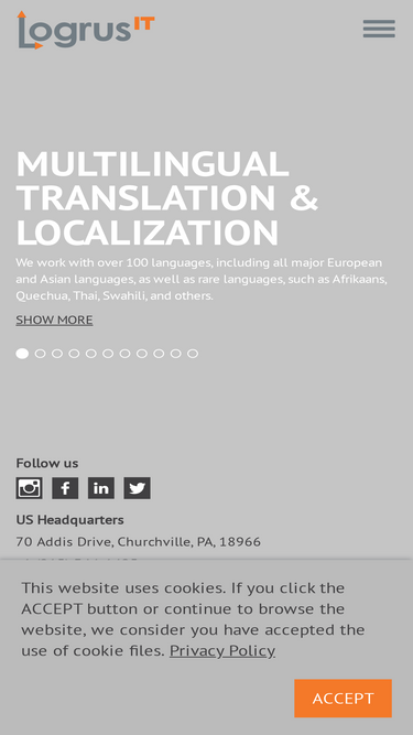 72%logrus it is an end-to-end provider of customized translation services, localization and it solutions. 100+ languages | 6 offices worldwide | est. 1993