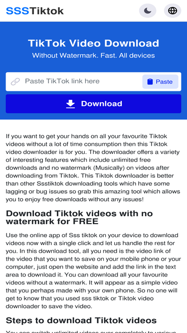75%SSSTikTok ti consente di scaricare video TikTok in alta qualità. Basta andare su SSSTikTok, incollare il link e scaricare il video.