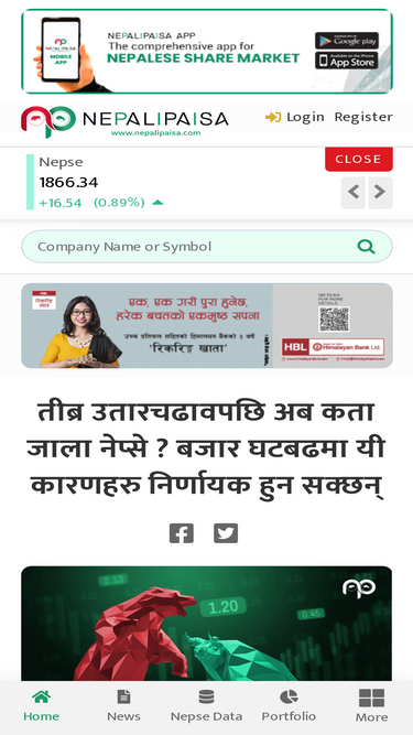 61%nepal leading online financial newsportal with up-to-date news, updates and information about nepse (nepal stock exchange), nepse listed companies, share market, stock market with free technical and fundamental analysis chart, nepse real time chart, and genuine trading research tools. newsportal covering complete news about nepse live market trading, floorsheet, indices, share, agm, bookclose, dividend, bonus, cash, update, mutual fund, ipo, company, banks , insurance, finance, hydro, portfolio in nepal,technical , fundamental and quantitative analysis research tools of stock market