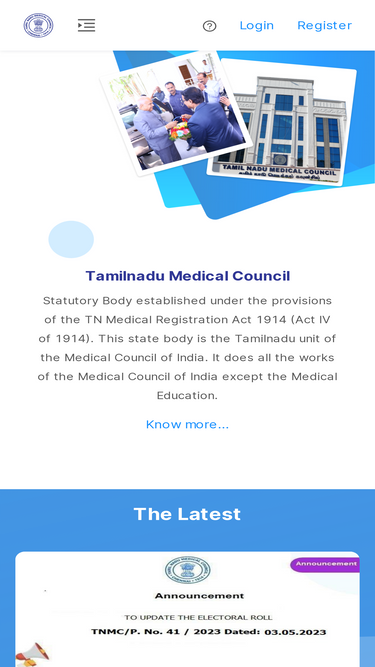 75%The Tamil Nadu Medical Council (TNMC) is the statutory body established under the Tamil Nadu Medical Registration Act, 1914. It regulates medical practitioner registrations, professional conduct, and issues certifications including Good Standing and CME.