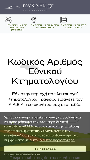 68%πληκτρολογήστε τον καεκ και δείτε πληροφορίες για το ακίνητο που σας ενδιαφέρει. αναζητήστε γεωτεμάχια με βάση τα χαρακτηριστικά τους. βρείτε άλλα χρήσιμα εργαλεία.