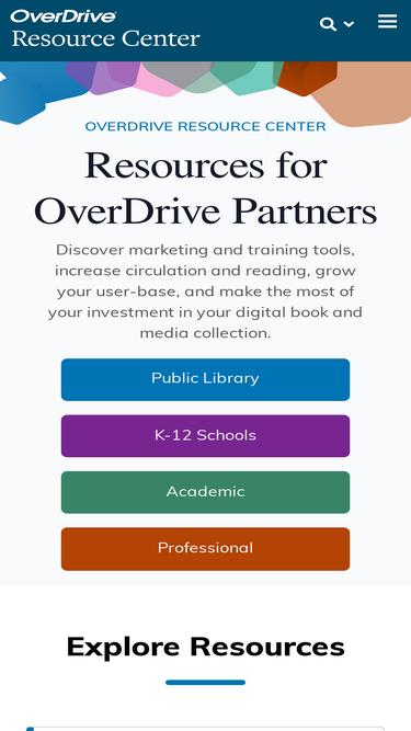 85%OverDrive's one stop shop for promotional resources, content recommendations, staff training and product information. Contact your OverDrive Team for additional assistance.