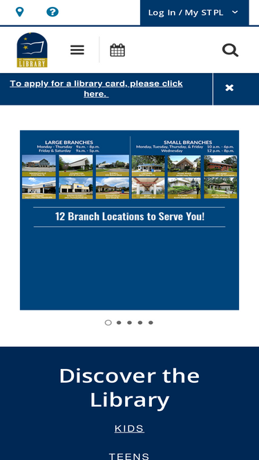 74%Quick Links Minor Card Options Get a Library Card Reserve a Meeting Room Library Board of Control Discover the Library » Kids TEENS ADULT…
