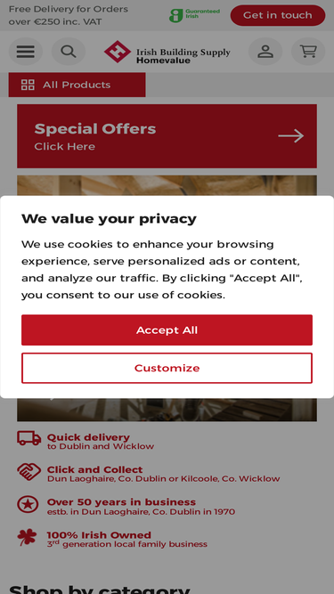87%Open your online account and save money and time Key features: Save money and time when ordering building materials and supplies Choose the right type of account for your project size Enjoy the service of a dedicated Account Manager to help you when you need it Designed for self builders, anyone renovating or extending, DIY lovers and trades people Fast delivery throughout Ireland Manage your account easily online and see your remaining balance