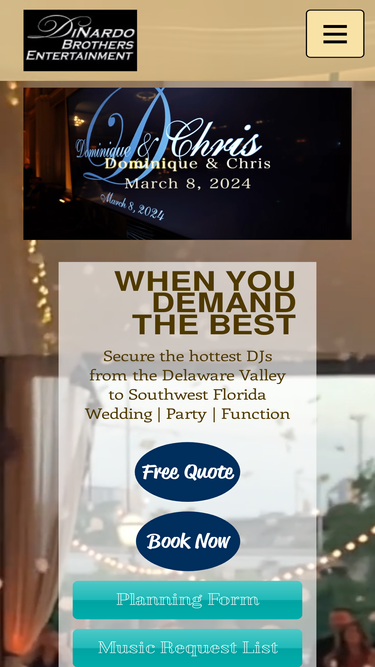 100%DiNardo Brothers Entertainment is a mobile DJ company based in NJ specializing in Weddings, Mitzvahs and Social Events. Servicing the entire US.