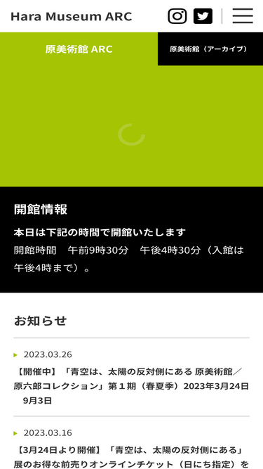89%原美術館(東京都品川区)と原美術館 arc(群馬県渋川市)の公式ホームページ。現代美術を中心に、展覧会とイベントの情報、カフェとミュージアムショップのご案内などを掲載。両館とも公益財団法人アルカンシエール美術財団が運営する。