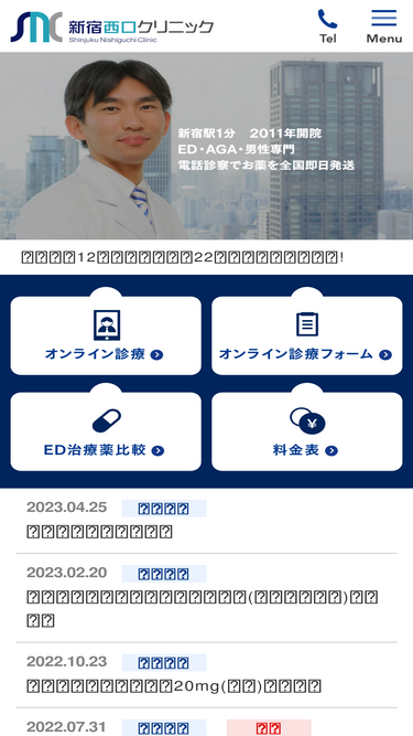 100%ED治療薬バイアグラやレビトラ、シアリスを1錠450円からと都内最安値で院内処方。お得なお試しセット・10+1錠セットもご用意しております。新宿駅徒歩1分、西口・南口すぐの予約不要・保険証不要のED治療専門クリニックです。