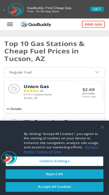 100%Download the free GasBuddy app to find the cheapest gas stations near you, and save up to 50¢/gal by upgrading to a Pay with GasBuddy+™ fuel rewards program.