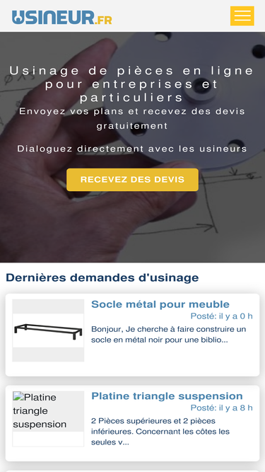51%usinage en ligne pour entreprises et particuliers. envoyez votre plan et recevez des devis gratuits. des usineurs français vous conseilleront. payez à réception et si vous êtes satisfait.