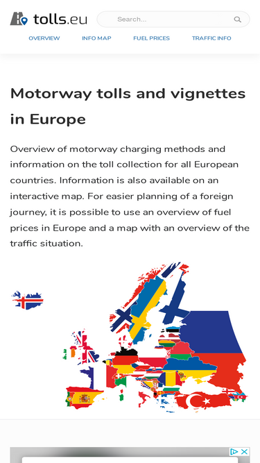 85%information on toll payment options, toll motorways and prices for toll vignettes and charges for motorways, bridges and tunnels for all european countries.