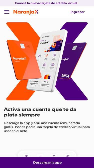 94%Manejá de taquito tu plata con tarjetas, préstamos, pagos online, rendimientos, inversiones, promos y más. Abrí tu cuenta hoy en Naranja X.
