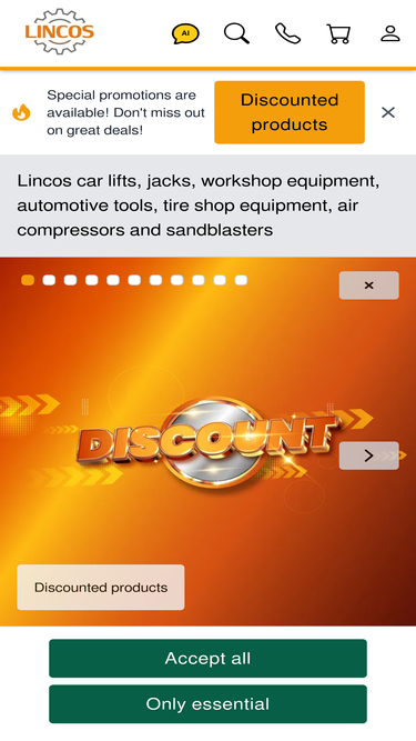 62%lincos car lifts, jacks, workshop equipment, automotive tools, tire shop equipment, air compressors and sandblasters