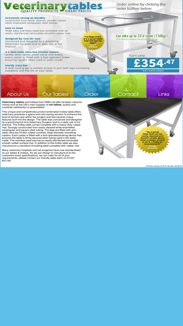 94%rms veterinary tables have been designed by a practicing veterinary surgon to meet every veterinarians need. prices from only £285 delivered!