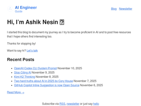 73%Hi, I’m Ashik Nesin 👋 I started this blog to document my journey as I try to become proficient in AI and to post free resources that I hope others find interesting too. Thanks for stopping by! Want to say hi? Let’s talk