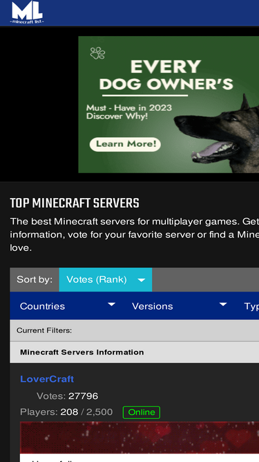 89%Find the top rated Minecraft servers with our detailed server list. Browse through and vote for your favorite.