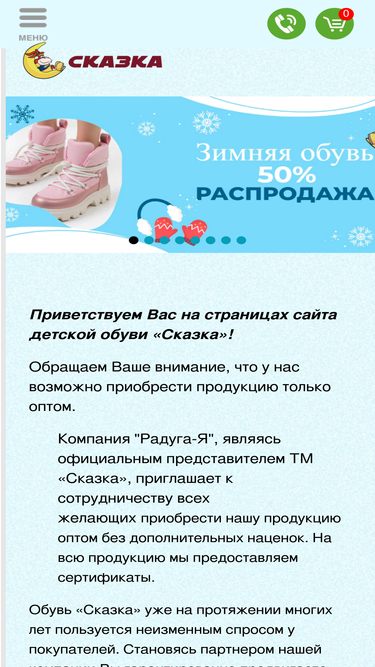 ооо "радуга-я" - официальный оптовый представитель детской обуви "сказка" в россии. просмотреть цены и оформить заказ вы можете после регистрации в нашем интернет-магазине. работает система скидок.