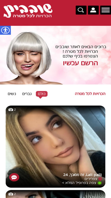 73%אתר הכרויות חדיש ומיוחד. כאן תוכלו למצוא קשר לכל מטרה לא מחייב. בואו והרשמו למועדון בחינם.