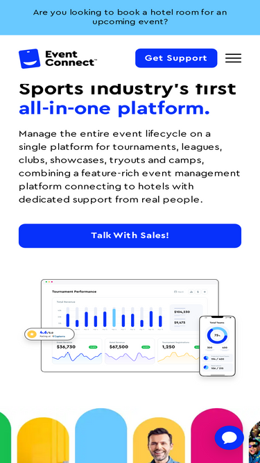 75%EventConnect is the leading all-in-one sports tournament software for tournament directors, rights holders, destinations and hotels.
